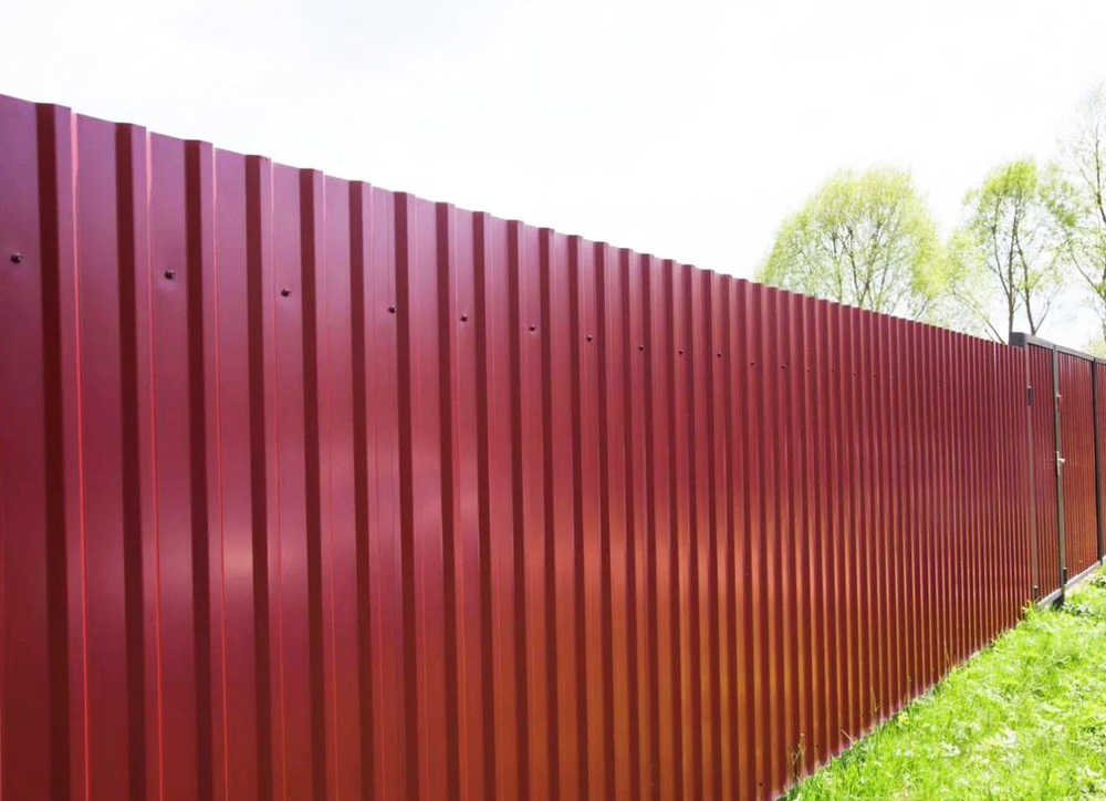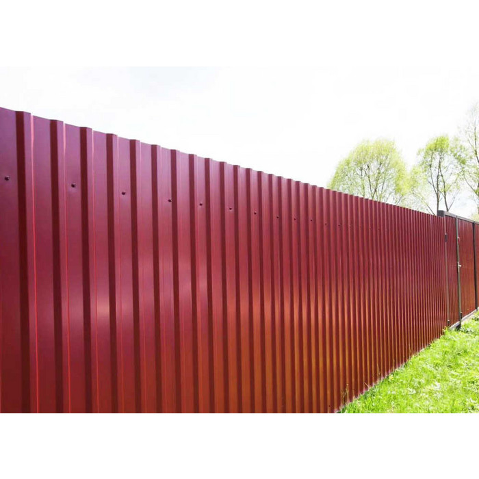 Профилированный лист МП-20x1100-A NormanMP (ПЭ-01-3005-0,5) — популярный материал в Красном селе для монтажа забора. Изначально он представляет собой металлический оцинкованный лист с покрытием. Общая толщина металла с оцинковкой и декоративно-защитным покрытием — 0.5 мм. Проходя процедуру холодного проката, металл принимает волнообразный вид. Такая конфигурация придает профилю жёсткость.